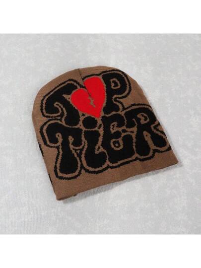 1件男女通用上层针织图案提花保暖帽,Y2K时尚个性款,适合秋冬季日常佩戴 - 咖啡棕 - 查看 1
