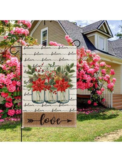 1入組情人節花卉和字母圖案花園旗幟,雙面印刷30x45cm室外院子裝飾,適用於求婚、紀念日、派對氣氛(支架不含) - 彩色 - 查看 1