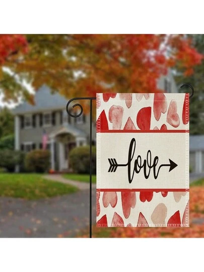 1 件情人節花園旗幟,帶有丘比特之箭和心形設計,印有類似亞麻麵料的雙面裝飾,適用於陽台、窗戶、書桌、花園、廣場、草坪 - 彩色 - 查看 1