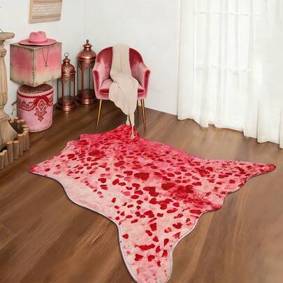 1件情人节限量版浪漫爱心印花仿羊绒不规则浴室装饰垫/小地毯/浴室地毯/地毯/客厅地毯/卧室地毯,现代简约仿羊绒方形浴室地毯,北欧ins风客厅卧室长方形地毯,厚绒毛,多色可选,防滑底背,可折叠收纳,提升家居装饰格调 - 彩色 - 查看 1