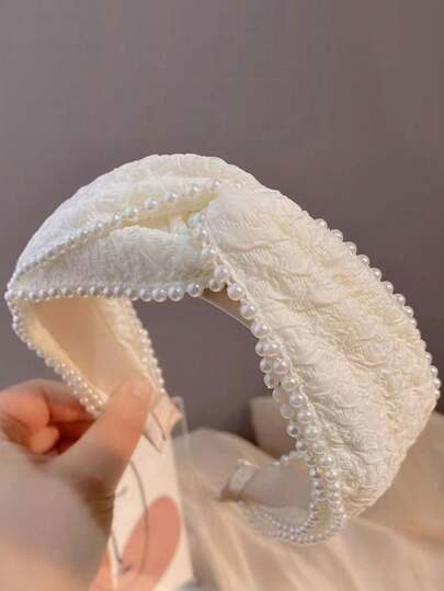 1入組多功能假珍珠裝飾發帶,可愛洗臉收發夾,女士頭飾 - 白色 - 查看 1
