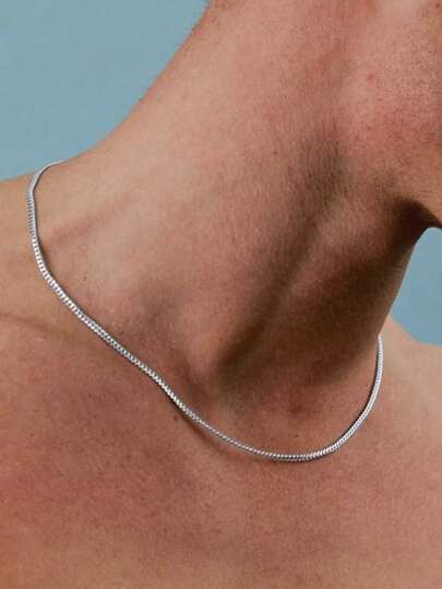 1 件百搭素链简约项链锁骨链不锈钢不褪色男士日常装饰 - 鏈條 - 查看 1