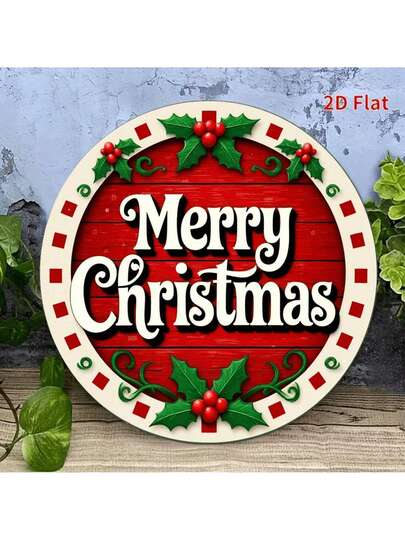 1 件复古圣诞金属墙饰 - 红色背景绿叶圣诞快乐标志 - 重型室内外节日装饰 - 耐候家居、花园、咖啡厅、酒吧悬挂装饰 - 预钻孔易于悬挂无需接线 - 节日氛围装饰,随机孔位置 - 彩色 - 查看 1
