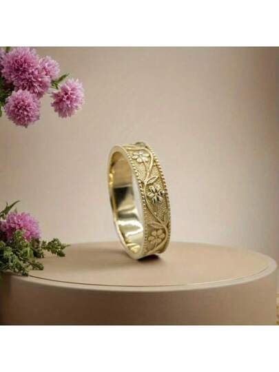 1 件复古花卉设计戒指,女士结婚戒指,节日周年纪念礼物 - 金色 - 查看 1