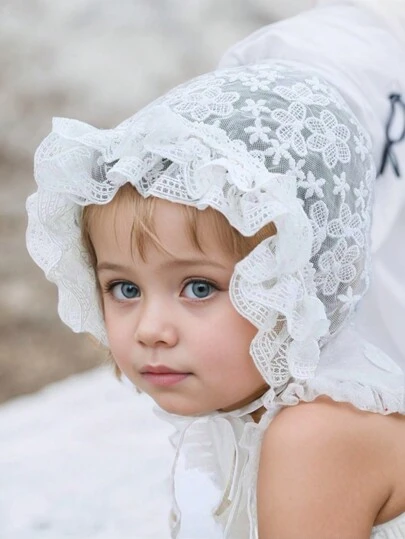 1顶复古蕾丝花朵刺绣宫廷风婴儿帽,新生儿保暖帽,米色 - 白色 - 查看 12