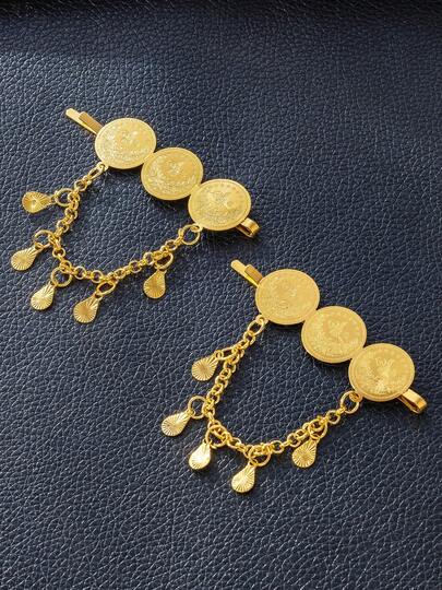1 件复古金属链流苏发夹,中东风格刘海发夹,舞蹈,表演发饰 - 均碼 - 查看 1