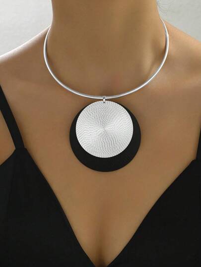 1 件复古风格金属圆盘和泪珠吊坠颈链 - 銀色 - 查看 1