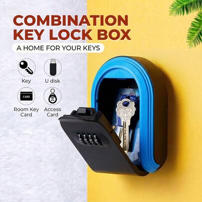 1个壁挂式密码钥匙盒,用于存放入口处的钥匙和户外临时防盗钥匙。这款猫眼密码锁盒适用于民宿、住宅、建筑工地和装修公司等场所的钥匙存放。