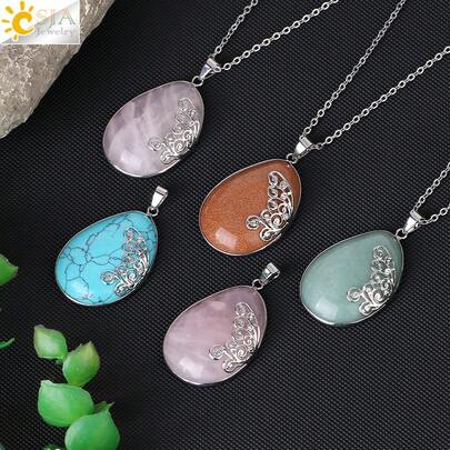 1件装水滴水晶吊坠项链,女士蝴蝶翅膀造型,天然紫水晶石英疗愈项链饰品 H152 - Necklace - 查看 17