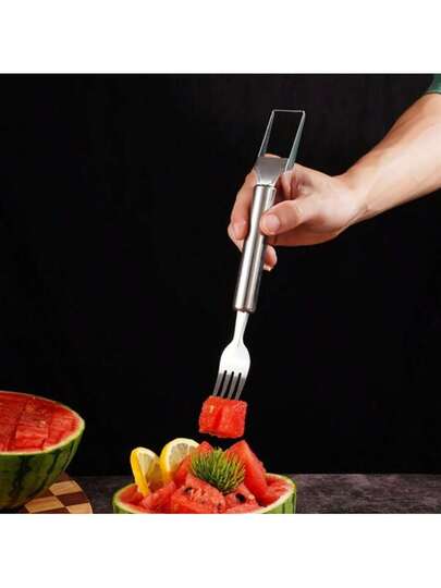 1 件西瓜切片器 2 合 1 不锈钢水果切刀,西瓜切片器工具,送给妈妈、爸爸、老师的礼物,厨房露营工具 - 銀色 - 查看 1