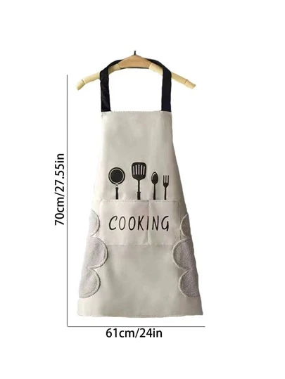 1件防水pvc圍裙,帶有大口袋,抗油污和污漬的圍裙,廚房工作服 - 白色 - 查看 1