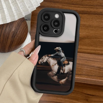 1个西部牛仔骑马图案手机壳,复古美式风格,防震TPU保护套,兼容 17/17 Pro/17 Pro Max/16/11/13/15/15 Plus/15 Pro/15 Pro Max/12/14 Pro Max/11 Pro Max/12 Pro/12 Pro Max/13 Pro/13 Pro Max/14 Pro/14 Plus,Galaxy A56 5G/A06/A05/A05S/S25/S24/S23/S22
