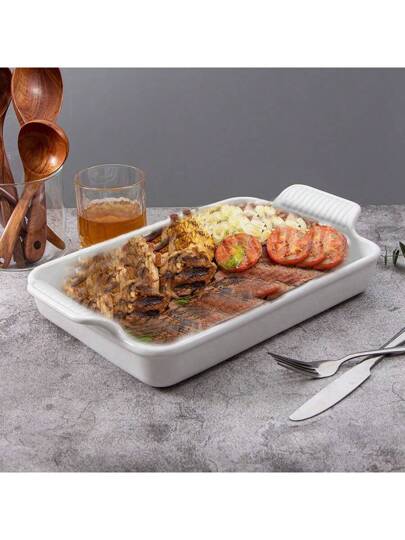 1 件带手柄的白色陶瓷烤盘,大号深烤宽面条盘,适用于烤箱,安全耐用的烤宽面条用具,结婚礼物 - 白色 - 查看 7