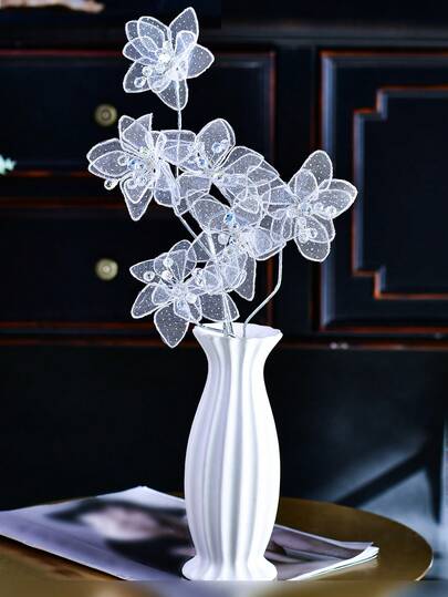 1支白色水晶仿真花,优雅网状人造植物,创意花瓶填充物,经久耐用,无需维护,适用于婚礼装饰、节日聚会、派对、花园、家居装饰 - 白色 - 查看 7