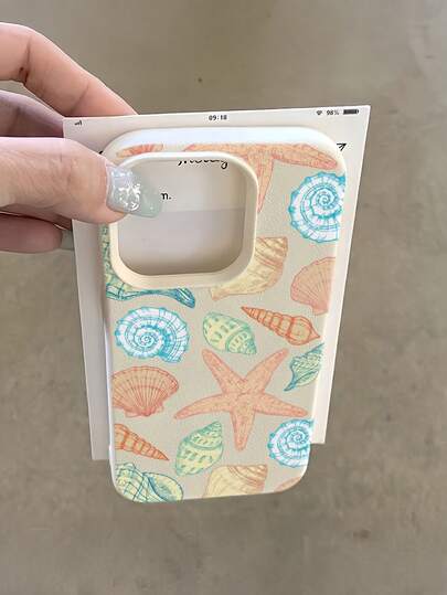 1个白色贝壳和海星图案极简TPU防震手机壳,兼容 17、16、15、14、13、12、11 Pro Max、Air和系列 - 彩色 - 查看 1