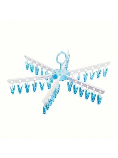 1入風防衣架,帶36個塑料小夾,傘形內衣曬架,旋轉防滑襪子架,塑料衣架挂架 - 藍色 - 查看 1