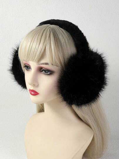 1入冬季毛絨耳罩,女士保暖折疊防凍耳罩 - 黑色 - 查看 1