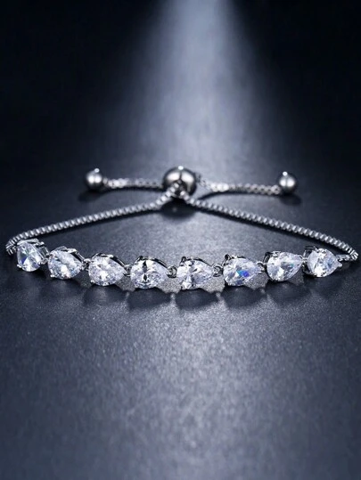 1 件全水钻可调节 18K 镀金手链女款新款心形锆石手链首饰 - 銀色 - 查看 1
