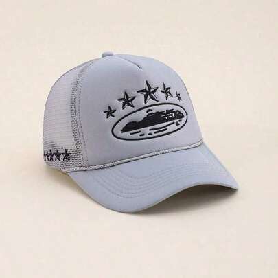 1pc Women Five-Pointed Embroidery Truck Driver Hat, Fashionable Baseball Cap With Mesh, Casual Outdoor Hat Spring Autumn Traveling, Beach Holiday Halloween