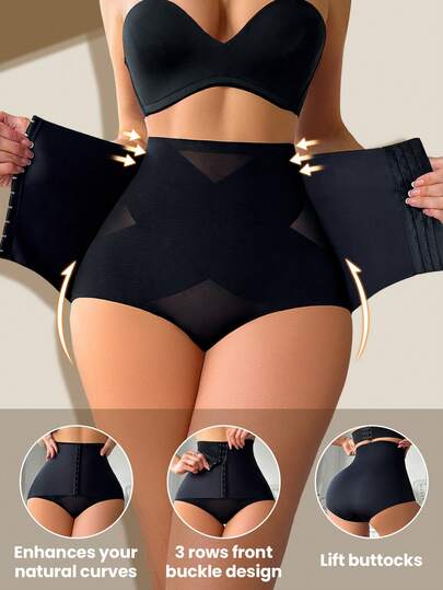 1件装女士高腰塑身短裤,强力收腰,性感网纱提臀塑形裤 - 黑色 - 查看 1