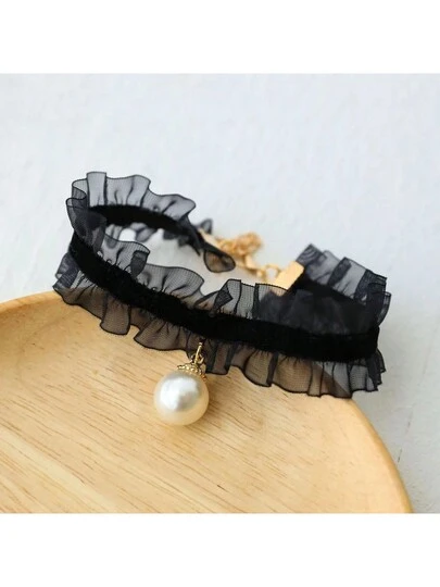 1件女士黑色蕾絲和珍珠性感頸帶適合情人節派對 - 珍珠 - 查看 5