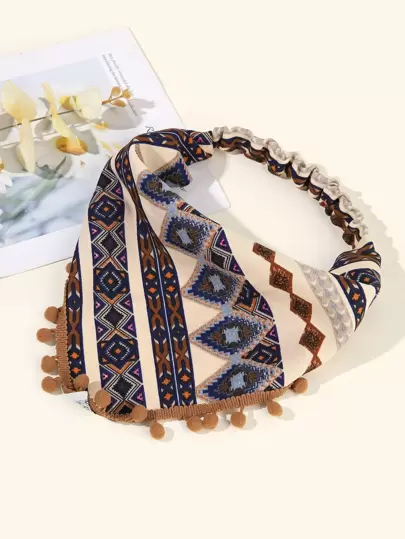 1件装女士波西米亚几何印花流苏三角围巾/头巾/发带/头巾/发箍/吸汗带,适合休闲、度假、街头风格,也可作为学校用品、大学用品、秋冬季女士发饰、柔软头巾/头巾/夏季穿搭。