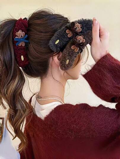 1个女士可爱小熊蝴蝶结香蕉发夹,时尚优雅小众发饰,时尚爪夹,优雅发爪,休闲发饰,美发夹 - 彩色 - 查看 11