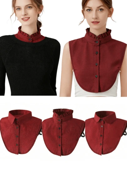 1件女士可拆卸领千鸟格衬衫,淑女领,韩版风格,适合通勤、搭配,可作卫衣领、毛衣领、衬衫领。 - 紅色 - 查看 6