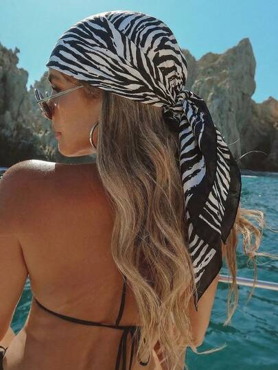 1条女士优雅斑马纹90厘米缎面方巾/头巾,适合休闲时尚户外佩戴,可作围巾、头巾、披肩,防风防晒。
