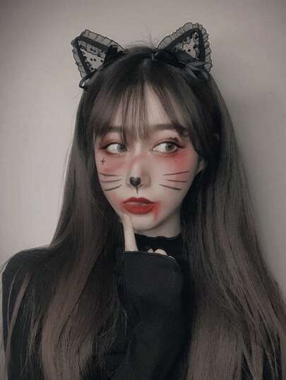1件装女士猫耳发箍,黑色蕾丝发圈,适合生日派对、节日、表演等场合佩戴。