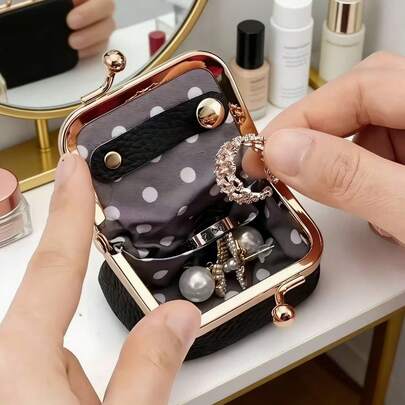 女士首饰盒收纳盒及迷你零钱包 - PU皮革首饰盒,带按扣,可收纳项链/戒指/耳环 - 小巧便携,方便旅行携带 - 女士礼品盒(生日、情人节、母亲节) - 优雅首饰盒,配有安全锁扣、波点图案、纹理内衬和织物内衬,生日礼物之选 - 彩色 - 查看 1