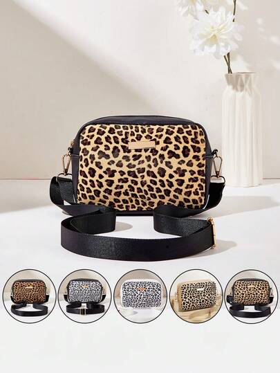1个女士豹纹小方斜挎包,时尚单肩包,配有可调节肩带,轻便休闲街头风包包,多功能腋下包,适合日常通勤、办公、外出,是馈赠佳品。 - 彩色 - 查看 1
