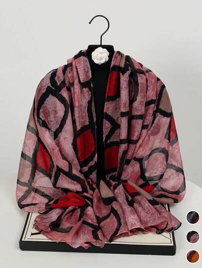 1条女士新款巴厘岛风格几何不规则印花围巾,优雅时尚的薄款防晒围巾,多功能柔软披肩围巾,日常晚装外套,旅行海边遮阳披肩,摄影服饰及节日礼物