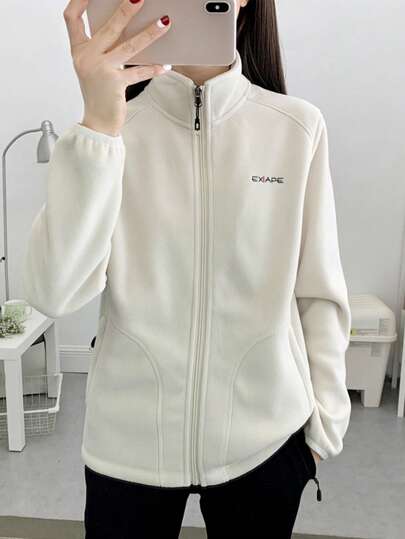 1件装 女士户外徒步登山330克加厚防风抓绒外套,冬季滑雪 - 米色 - 查看 1