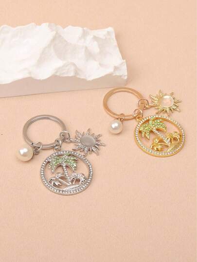 1件女士水钻椰子树吊坠,仿珍珠太阳挂饰,创意包包配饰,节日礼物