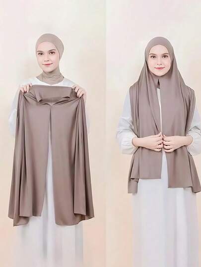 1件装女士纯色便捷头巾,舒适弹力伊斯兰祈祷头巾,速戴头巾,莫代尔头巾,时尚简约垂坠头巾,长款围巾,白色围巾,头巾配饰,休闲百搭,适合日常佩戴,女士连衣裙头巾 - 彩色 - 查看 25