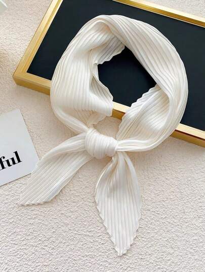 1 件女士纯色褶皱仿丝围巾、头带、发带、颈巾,多功能,适合日常使用休闲头巾、发带、头带,非常适合装扮您的冬季秋季 - 米色 - 查看 1