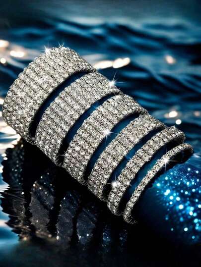 1条女士闪亮水晶弹力手链,优雅派对风格可调节手镯