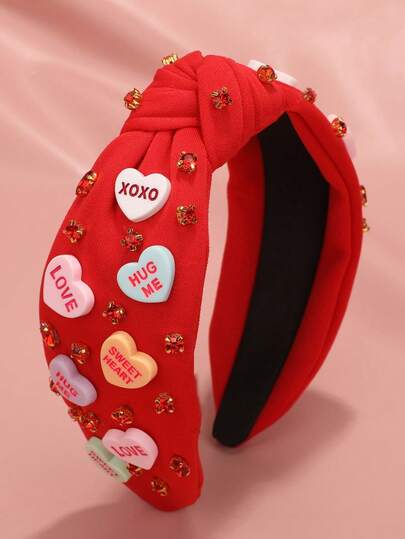 1件装女士情人节发箍,XOXO心形发饰,粉色爱心情人节配饰礼物头饰发带 - 紅色 - 查看 1