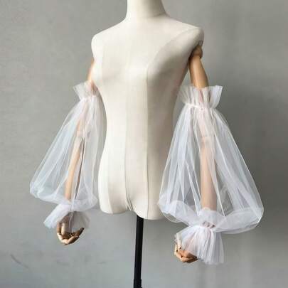 1件女士婚纱,薄纱灯笼袖,透明薄纱袖,适合摄影 - 白色 - 查看 1
