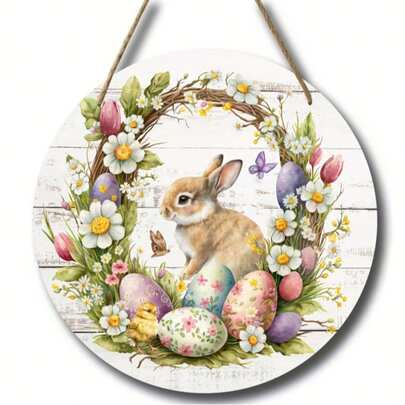 1个圆形木质复活节标牌,复活节兔子标牌,复活节彩蛋标牌,花环标牌,花环中心装饰,复活节礼物,复活节装饰品,门/墙装饰,家居装饰,房间装饰,农舍风格装饰,农场装饰,卧室装饰 - 彩色 - 查看 5