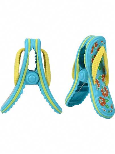SHEIN 1 件/2 件人字拖沙滩巾夹适用于椅子特大号塑料衣夹适用于泳池躺椅安全夹适用于沙滩椅 - 彩色 - 查看 2