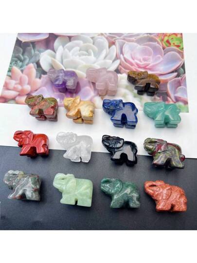 1 件/5 件/10 件/15 件随机材质天然水晶 1 英寸大象雕刻小雕像动物宝石能量石礼物适合男士女士 - 彩色 - 查看 1