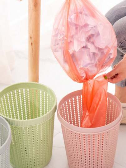 1个新款仿藤编织圆形压环无盖塑料垃圾桶,家用自抽垃圾袋,塑料垃圾桶 - 彩色 - 查看 1