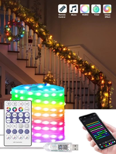 Acosh Neon 藍牙led燈串rgbic夢幻色彩效果,具有智能app自定義顏色音樂同步顏色變化,usb Led妖精燈可用於室內和室外裝飾派對氛圍照明 - Dreamcolor - 查看 1