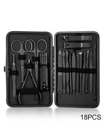 1 套经典黑色美甲套装手脚面部不锈钢配件、包、收纳盒、收纳 - 黑色 - 查看 1