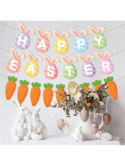 1 套复活节快乐可爱兔子胡萝卜装饰横幅,节日派对窗户背景装饰横幅 - 彩色 - 查看 2