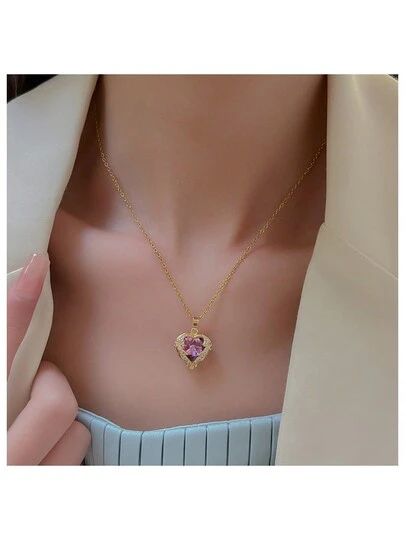 1套海洋風心形彩色立方氧化鋯鑽飾品套裝,包含項鍊和耳環 - 海洋之心 - 查看 1