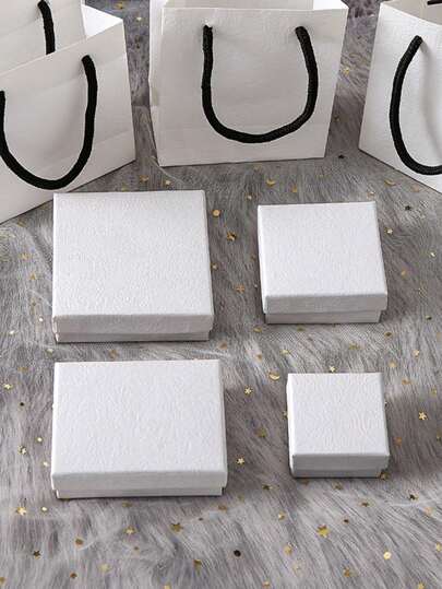 1套簡約黑白色簡約裝飾品包裝盒,具有ins風格,新鮮耳環、手鐲、頸鏈、戒指禮品盒,附有手提袋 - 白色 - 查看 1