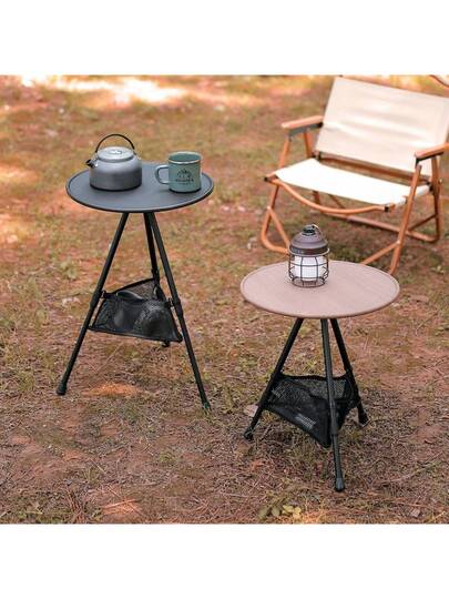 1組木紋色戶外鋁合金摺疊小圓桌,可攜式並可調節高度黑色桌子,用於露營野餐,極輕的咖啡桌 - 木紋色 - 查看 1